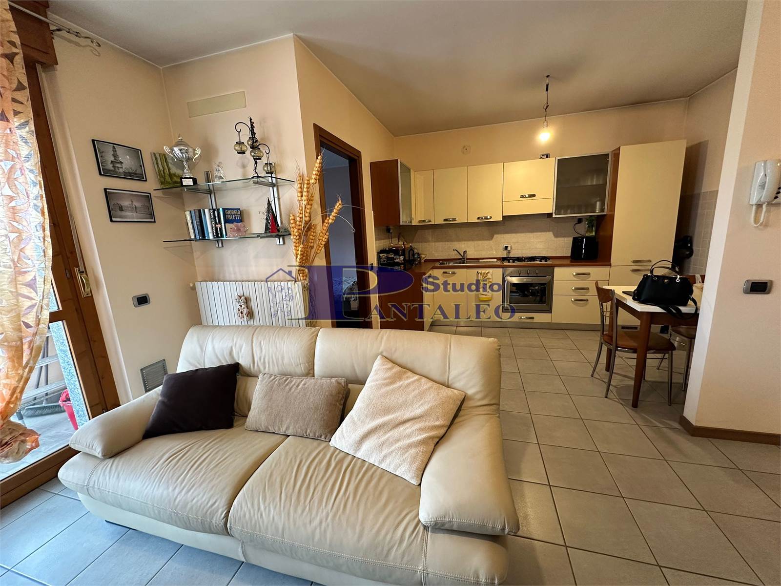 L’immobile si apre su un comodo ingresso che conduce al luminoso soggiorno, ambiente accogliente e ben distribuito, con accesso diretto a un ampio terrazzo coperto di circa 15 mq, ideale per pranzi e momenti di relax all’aperto in ogni stagione. L’angolo cottura, funzionale e ben organizzato, si integra perfettamente nella zona giorno.