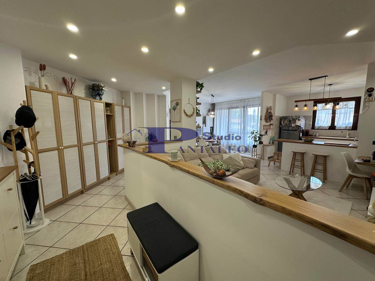 L’immobile si presenta in perfette condizioni ed è composto da ingresso, ampio soggiorno con zona pranzo e angolo cottura a vista, con accesso diretto a un comodo terrazzo coperto che conduce al giardino privato di circa 80 mq, ideale per momenti di relax all’aperto.