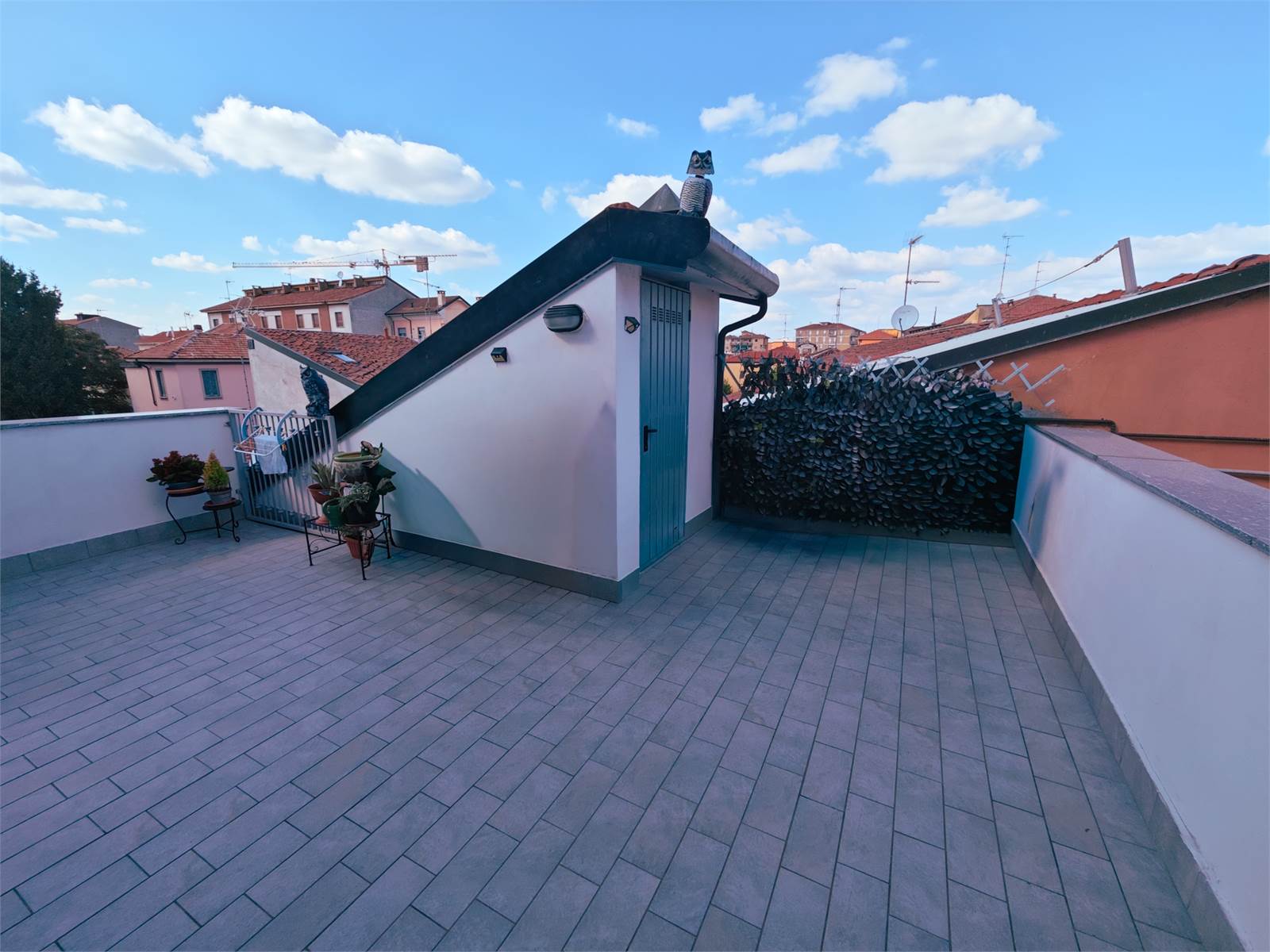 In palazzina di poche unità abitative, con ascensore, è disponibile un attico luminoso, distribuito su due piani, ideale per chi desidera spazi vivibili uniti a comfort moderni.