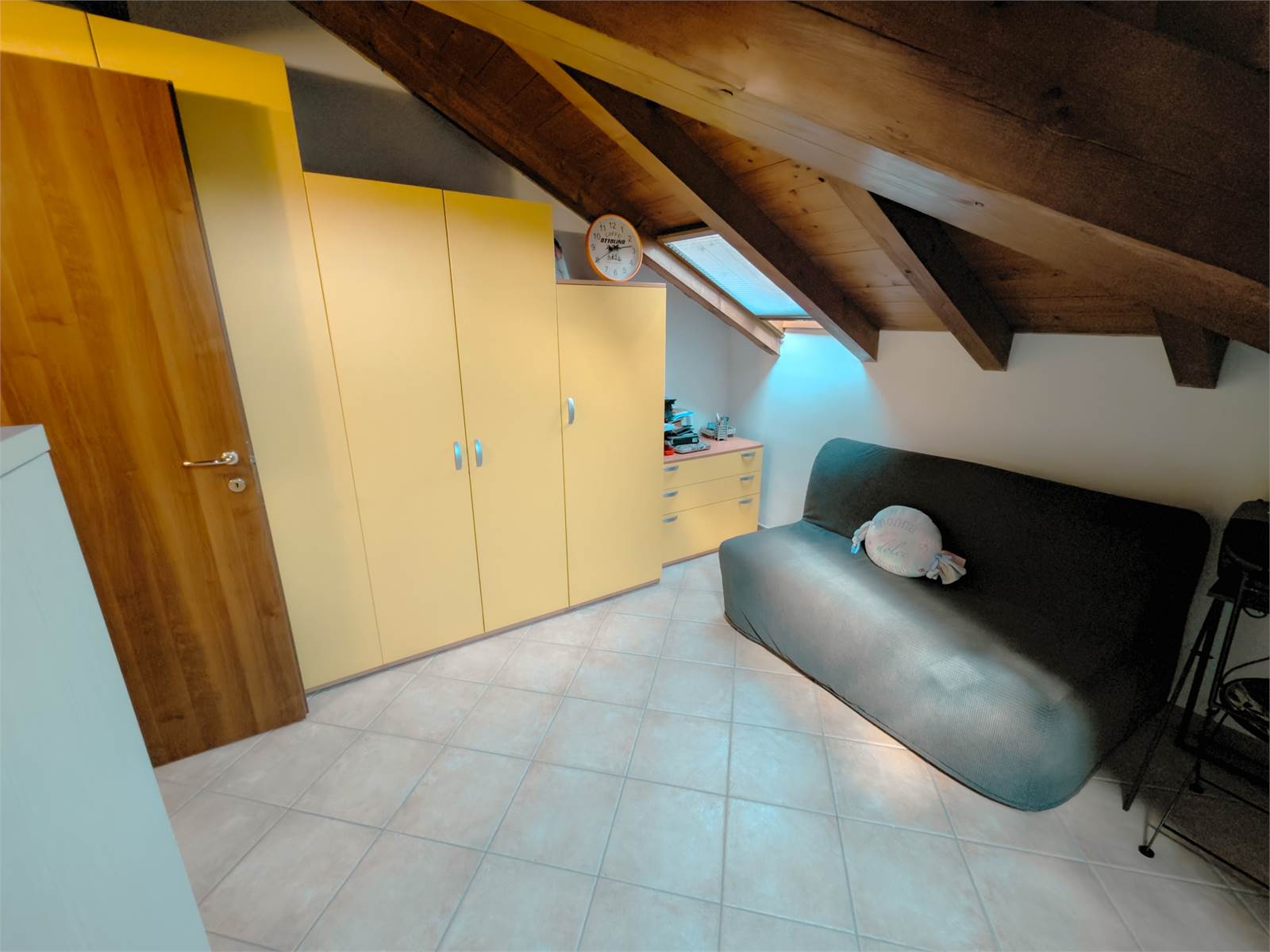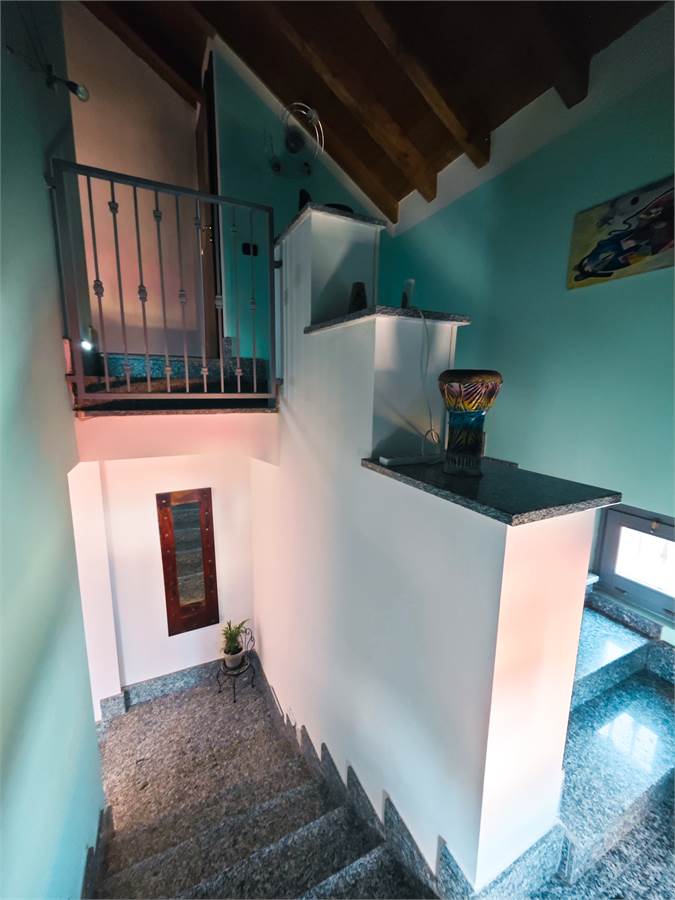 Una scala interna comoda conduce al piano mansardato, dedicato alla zona notte. Qui troviamo due camere da letto, una piccola cabina armadio, un ripostiglio / lavanderia e un ulteriore vano ripostiglio.