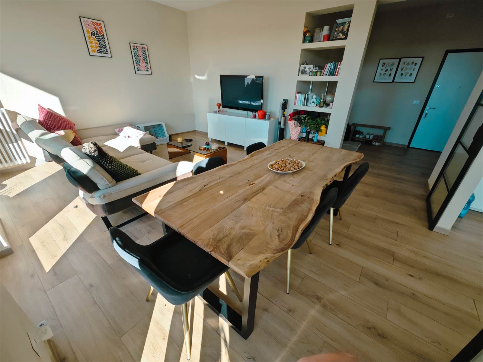 Finiture moderne e scelte pratiche: gres porcellanato effetto legno in tutti gli ambienti e infissi in PVC con doppi vetri.