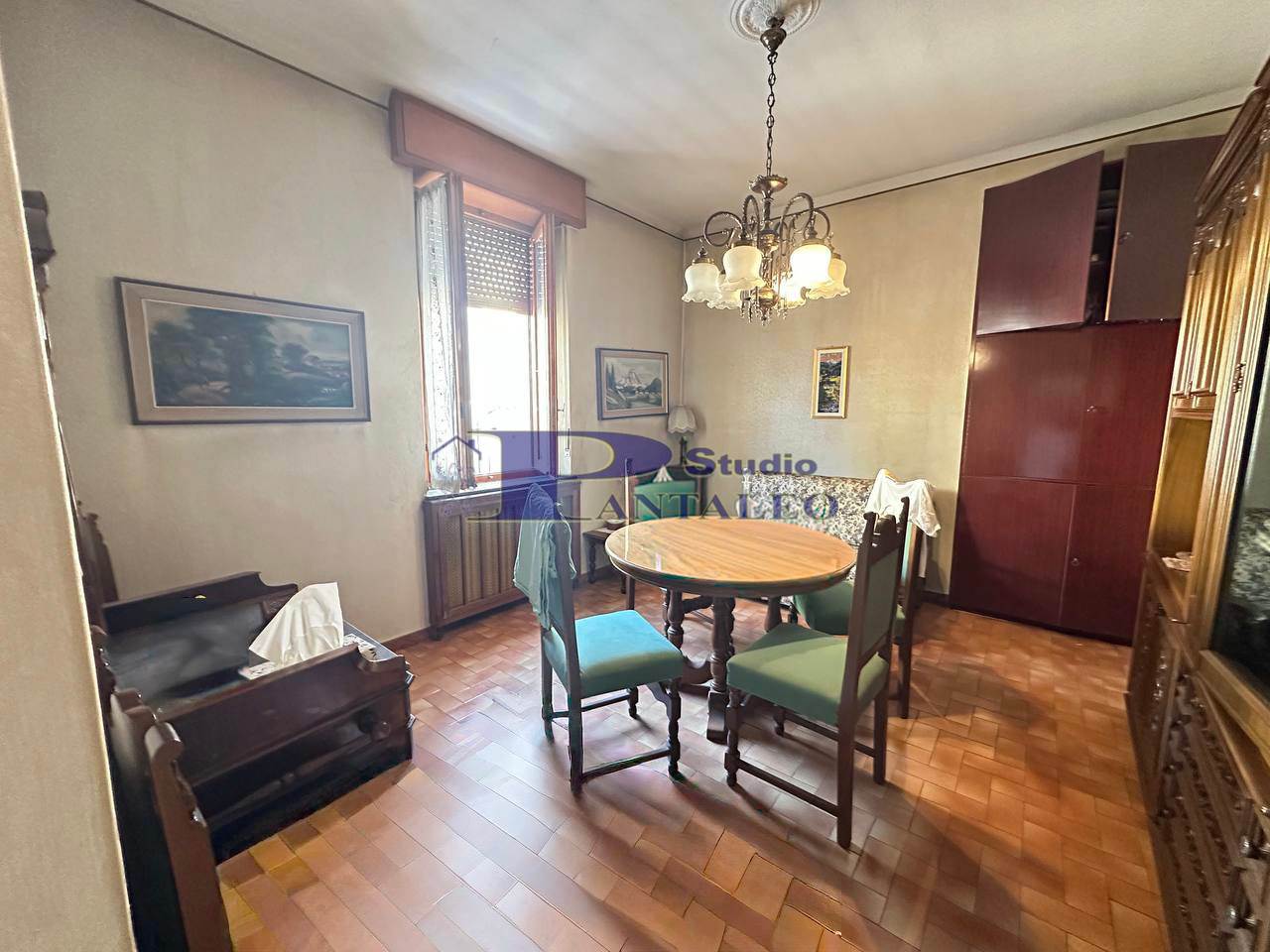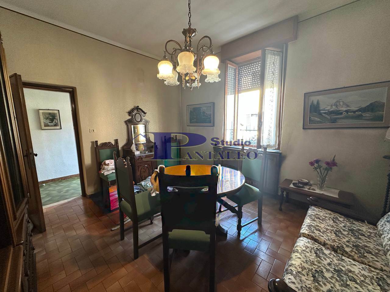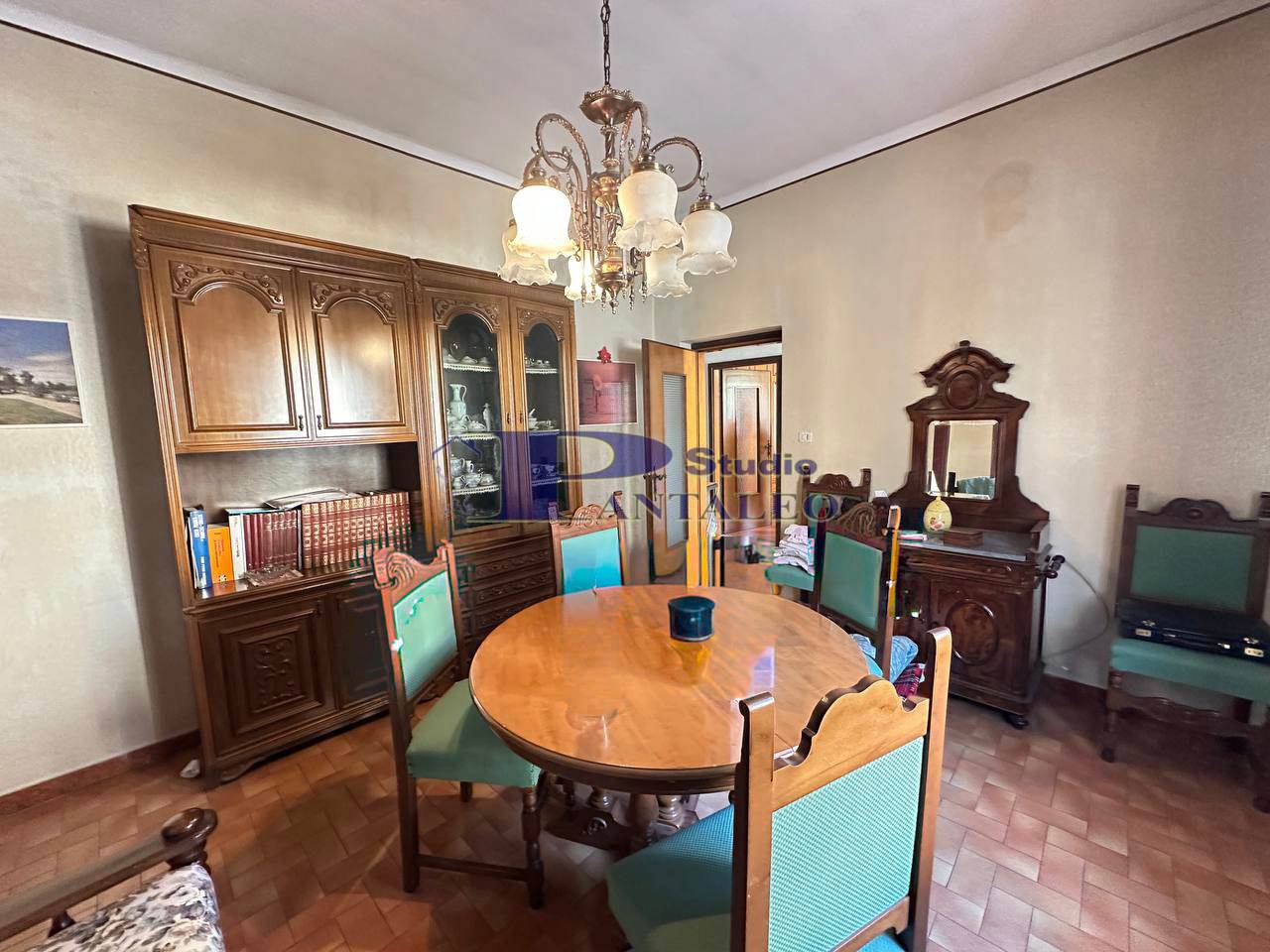 L’abitazione principale si sviluppa al piano rialzato per una superficie di circa 150 mq ed è composta da ingresso, soggiorno, cucinotto con tinello, tre camere da letto, veranda e due balconi.