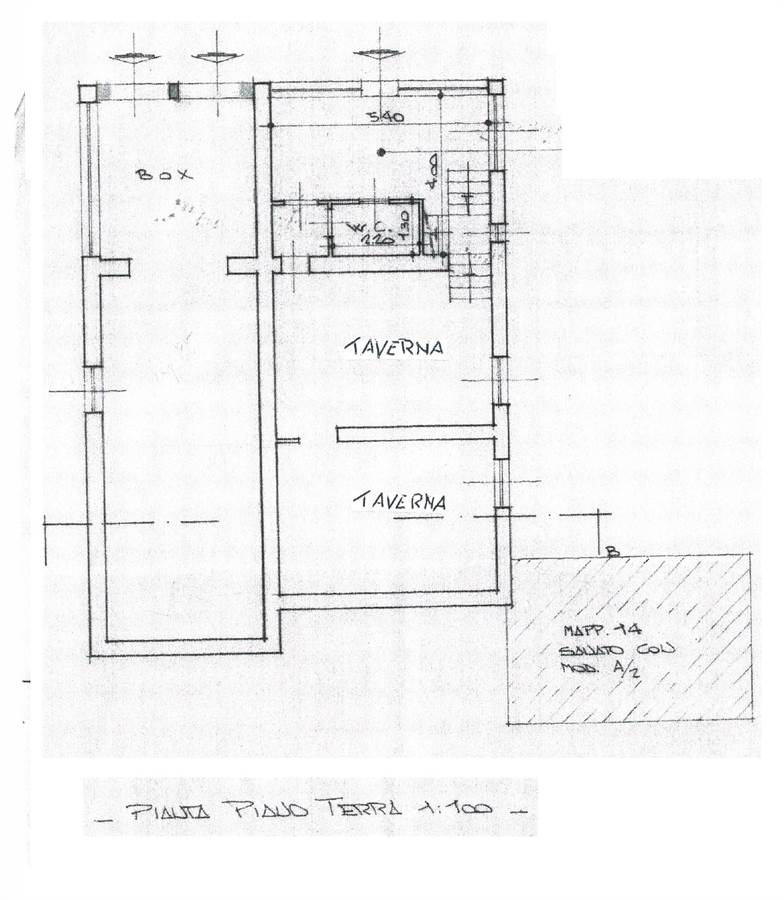 Il piano terra ospita una grande Cantina di 127 mq, suddivisa in taverna con un'altezza di 2,80 mt., veranda e cantina. Possibilità di recuperare l'Abitabilità nella zona Taverna.