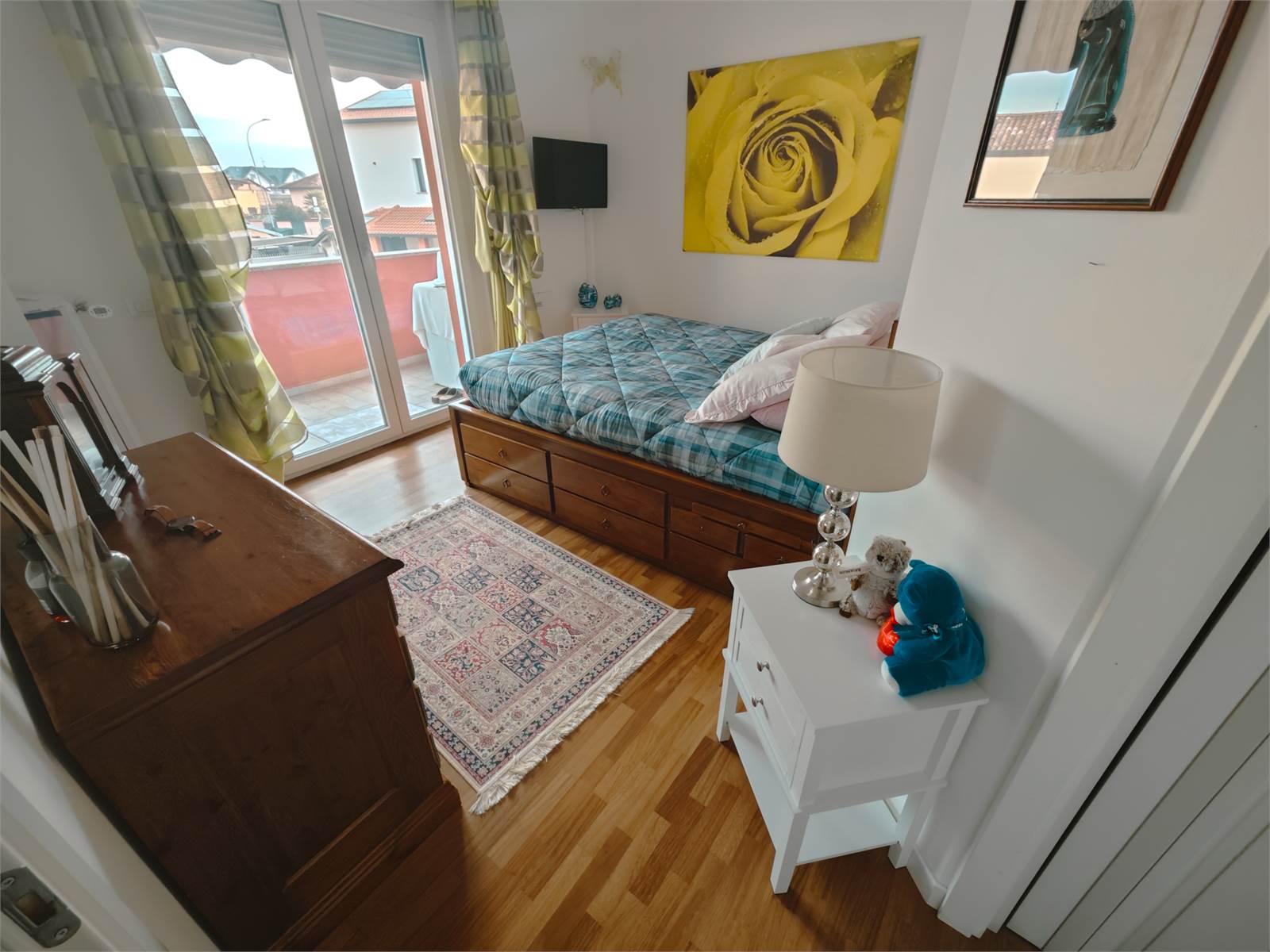 Entrambe le camere godono dell’accesso a un ampio balcone coperto, comodo e riservato.
