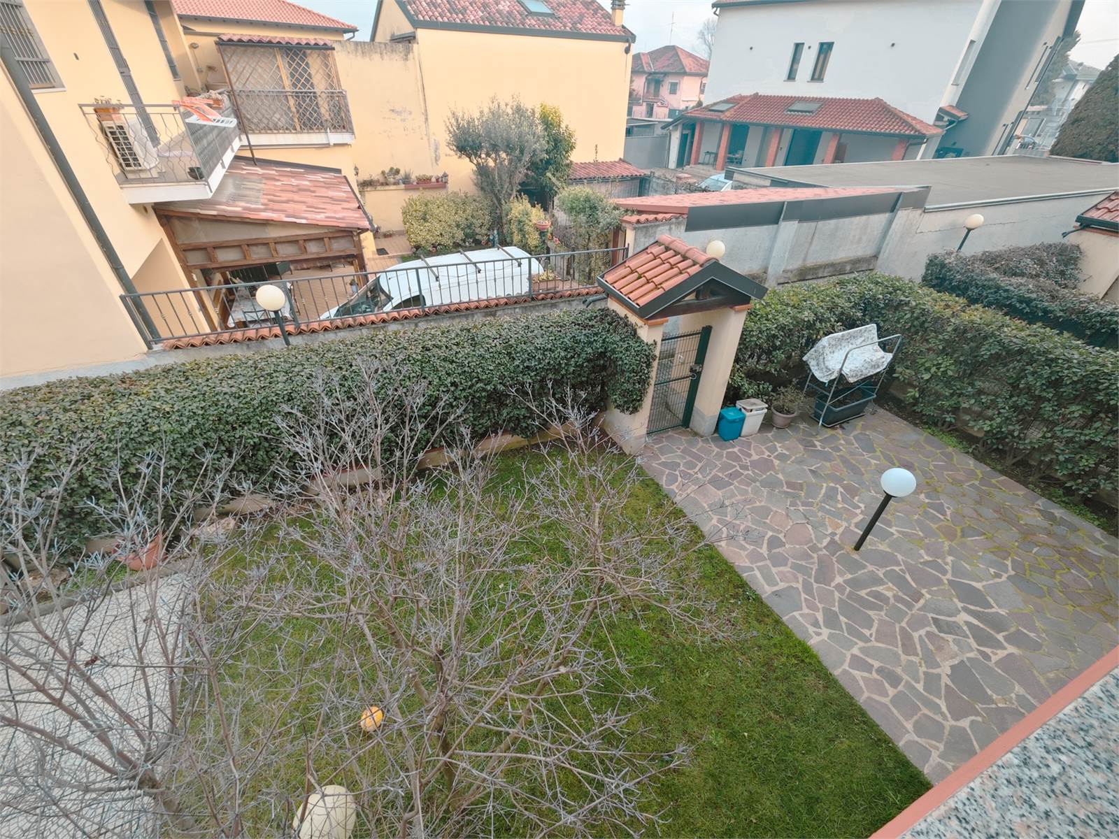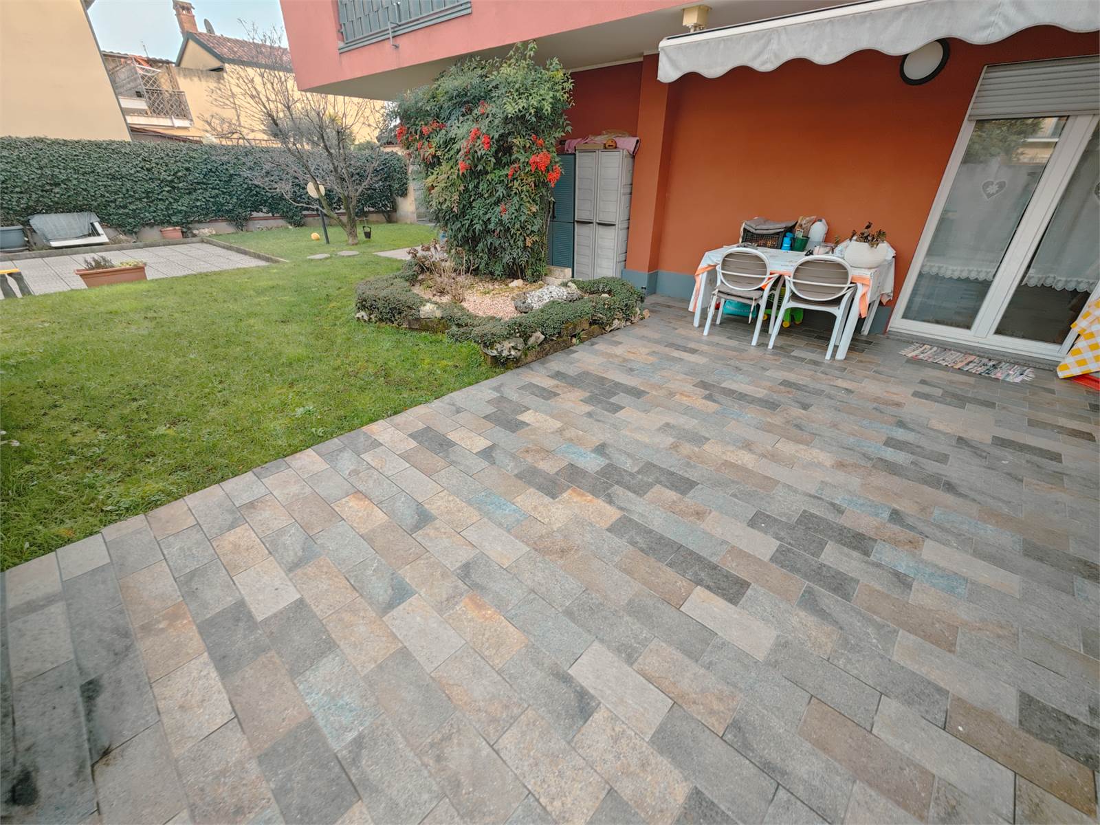 Dal soggiorno si accede direttamente al giardino privato, ben sfruttabile e suddiviso in zona terrazzo e area verde, ideale per momenti di relax.