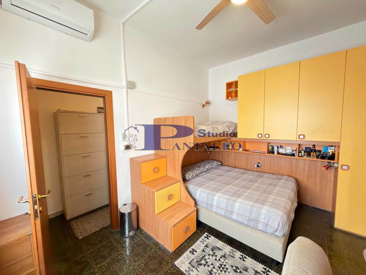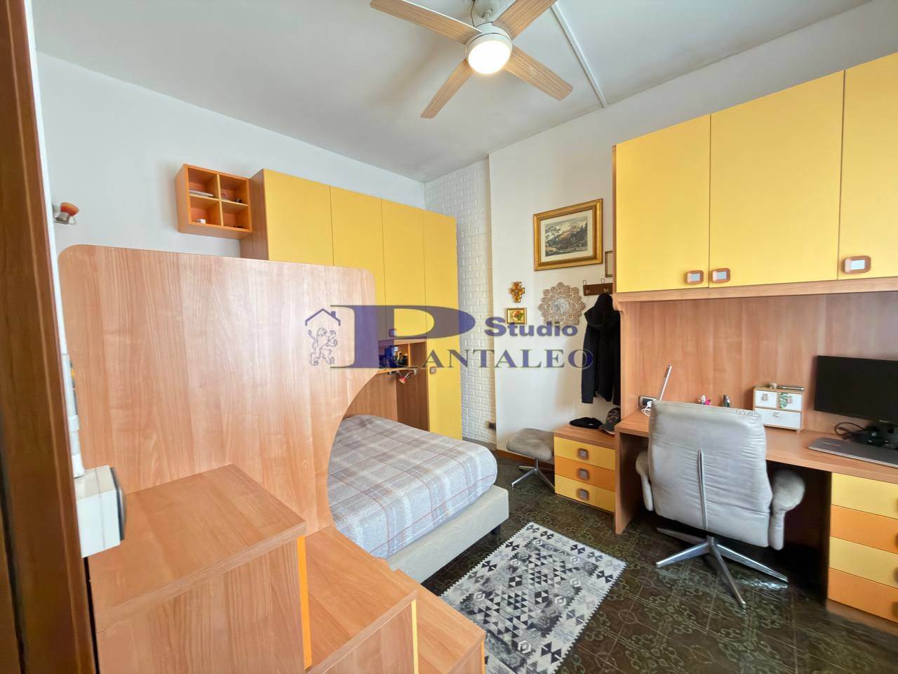 L’abitazione è composta da ingresso, luminoso soggiorno con accesso al balcone coperto, ampia cucina abitabile, disimpegno, camera matrimoniale con cabina armadio, spaziosa cameretta e bagno.